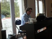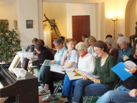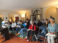 Dimanche 22 Octobre, le Chœur s’est donné rendez-vous au château de Lembeek pour une journée de répétition supplémentaire, une occasion pour les choristes de se mettre au vert et de faire plus ample connaissance. La journée a commencé par une série d’exercices de respiration. Entre les passages distrayants de deux écureuils à proximité des fenêtres, Thierry Vallier a pu (r)expliquer l’importance de celle-ci dans la pratique du chant et exposer quelques éléments techniques sur le fonctionnement de l’instrument qu’est la voix. L’après-midi fut consacrée à commencer à déchiffrer la fugue du dernier chœur de Davidde Penitente – une partie de l’œuvre qui n’est pas des plus faciles.